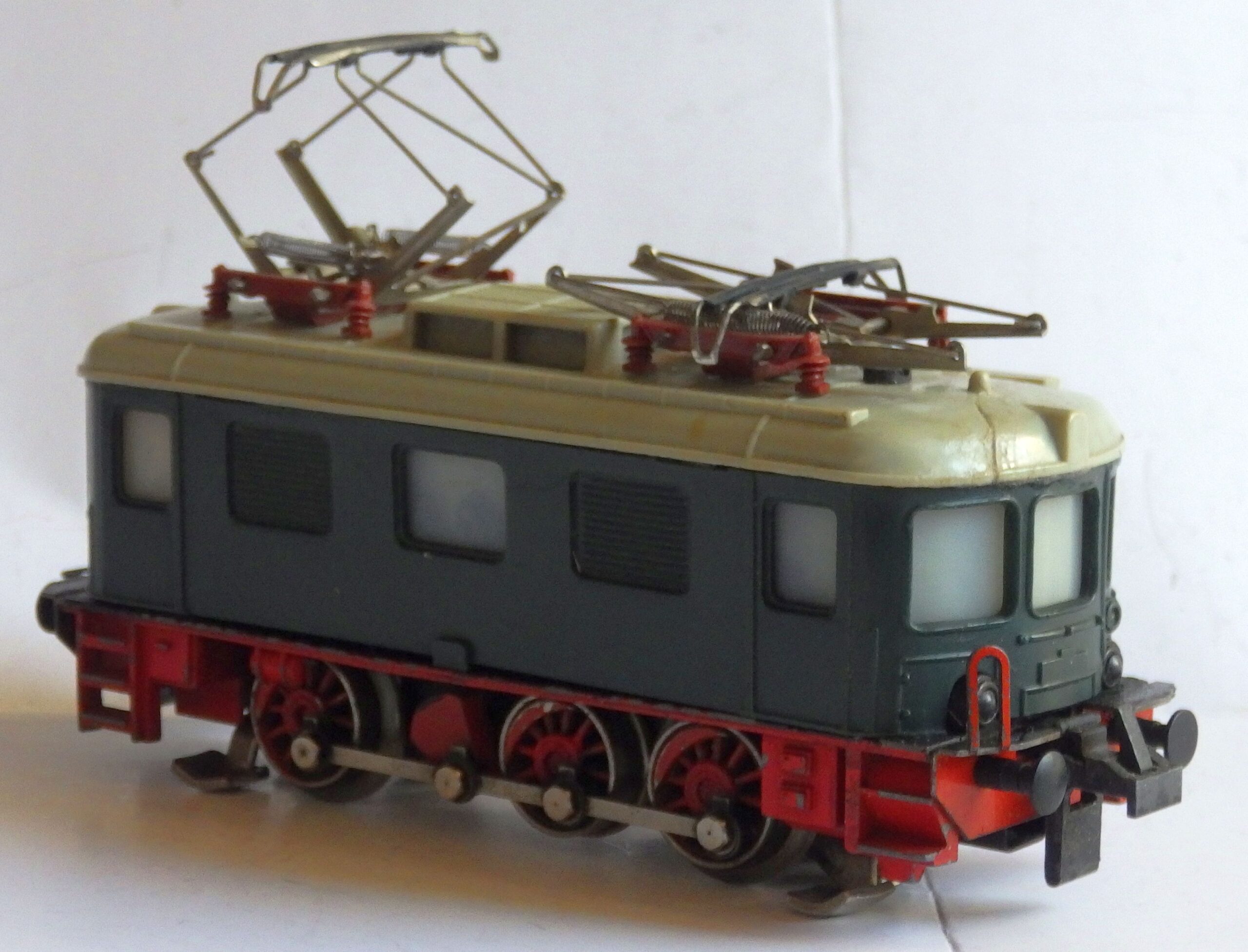 Grünes Kunstoffgehäuse, Dach platingrau mit zwei Phantographen ohne Funktion, die jedoch noch verkabelt werden können um Strom aus der Oberleitung zu entnehmen. Die Fenster sind mit einem hellgrauen Plastikeinsatz hinterlegt. Das Fahrgestell ist aus Metall-Spritzguß, wie bei dem Modell der V36, Artikel-Nr.2261 bis 2263. Eine Seite der Frontlampen sind beleuchtet.