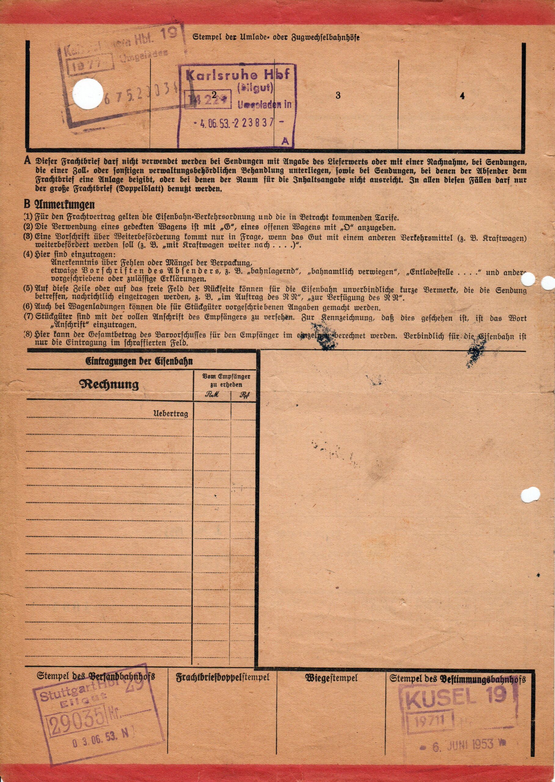 Empfängerbahnhof: Kusel/Pfalz.