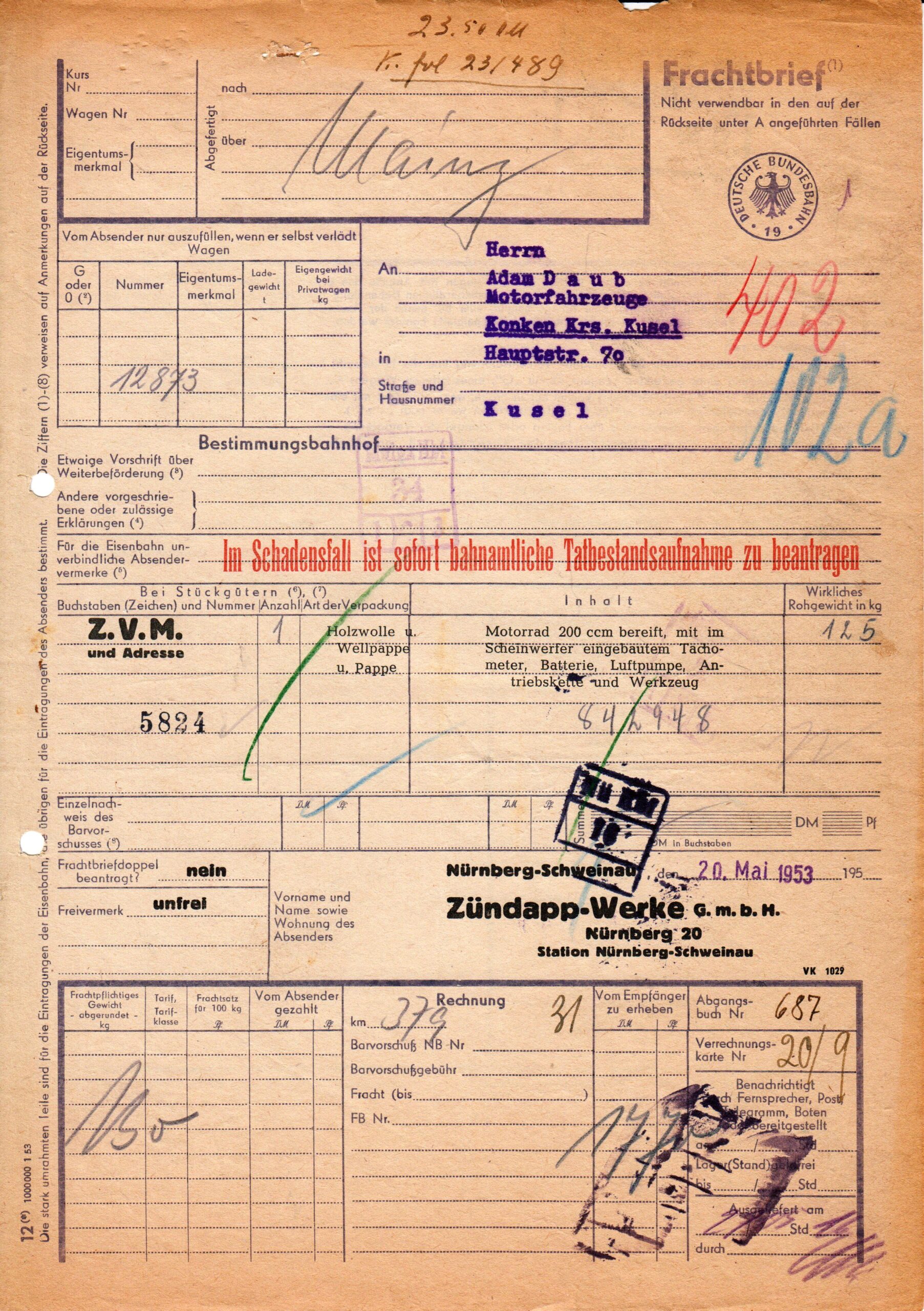 Sonstiges: Auslieferung der Sendung 7 Tage nach Einlieferung! Hinweis: beim Schadensfall sofortige bahnamtliche Tatbestandsaufnahme! Dies führte eventuell zur Anzeige wegen Sachbeschädigung oder Schadensregulierung durch die Deutsche Bundesbahn ( Regulierung aus eigenem Vermögen). Der Ermittlungsdienst der Bahnpolizei wurde dafür tätig. In Kaiserslautern waren dafür zwei speziell ausgebildete Beamte bei der Bahnpolizeiwache angegliedert. Die Ermittlungsergebnisse wurden in einem eigenen Nachweis festgehalten, getrennt von den schriftlichen Niederschriften der Bahnpolizei.