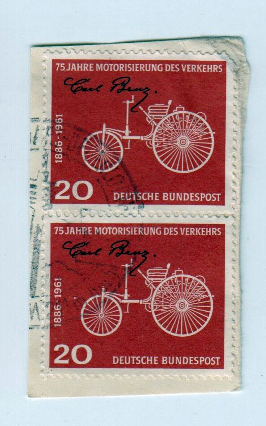 Bildmotiv: Erster Motorwagen von Carl Benz (1844-1929), Ingenieur; Namenszug.