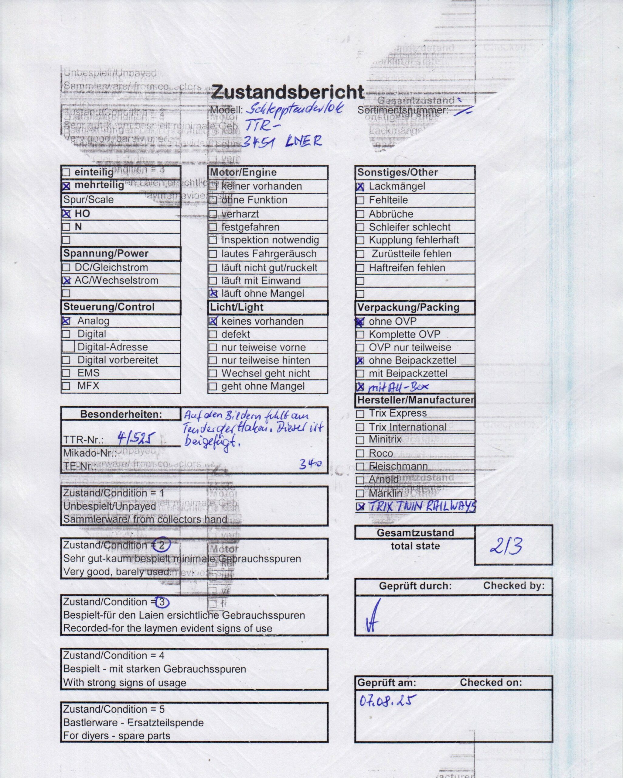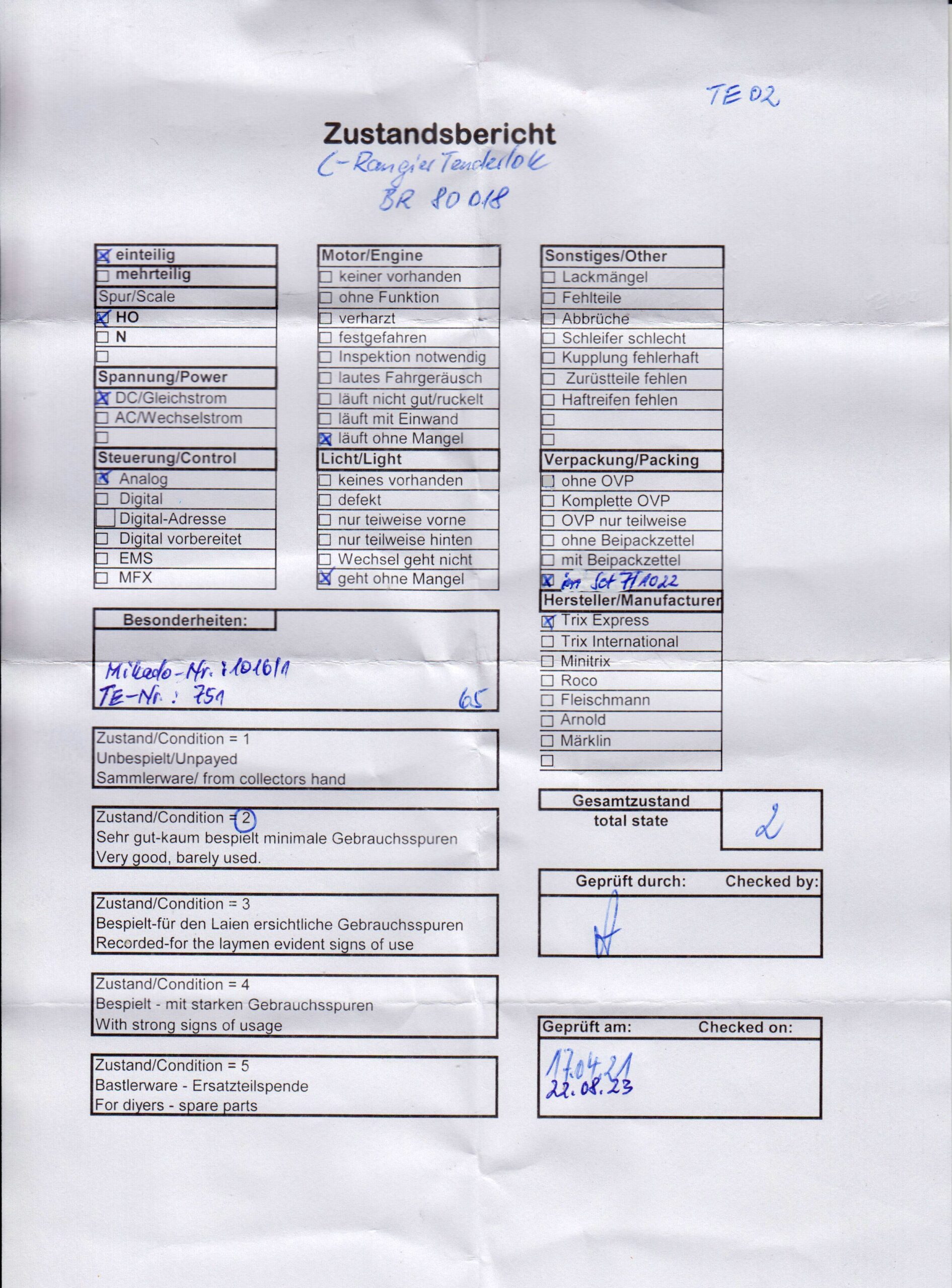 Erstmals im Jahr 1955 im TE Katalog angeboten diese Zugpackung für Gleichstrombetrieb. Die Zuglänge beträgt ca. 50 cm, der Packungsinhalt setzt sich folgendermaßen zusammen:
